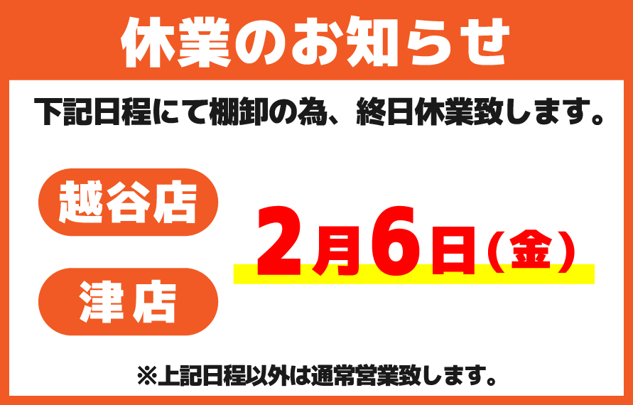 棚卸のため上記の通り臨時休業致しますのでご案内申し上げます。